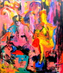2017Dit werk is gebaseerd op Italië”s grootste vrouwelijke kunstenaar en strijdster tegen vrouwen onrecht uit de 17de eeuw: Artimisia Gentlileschi getiteld "Suzanne en de Ouderlingen". De vrouw wordt bespied door heren en willen haar het zwijgen opleggen. Aanvankelijk wordt de vrouw veroordeeld voor uitlokking en overspel. Het tij keert zich tegen de mannen en worden zij alsnog veroordeeld. Heden ten dagen is onderdrukking van vrouwen helaas nog steeds actueel. Ik heb geprobeerd dit klassieke thema op een moderne expressionistische wijze weer te geven.